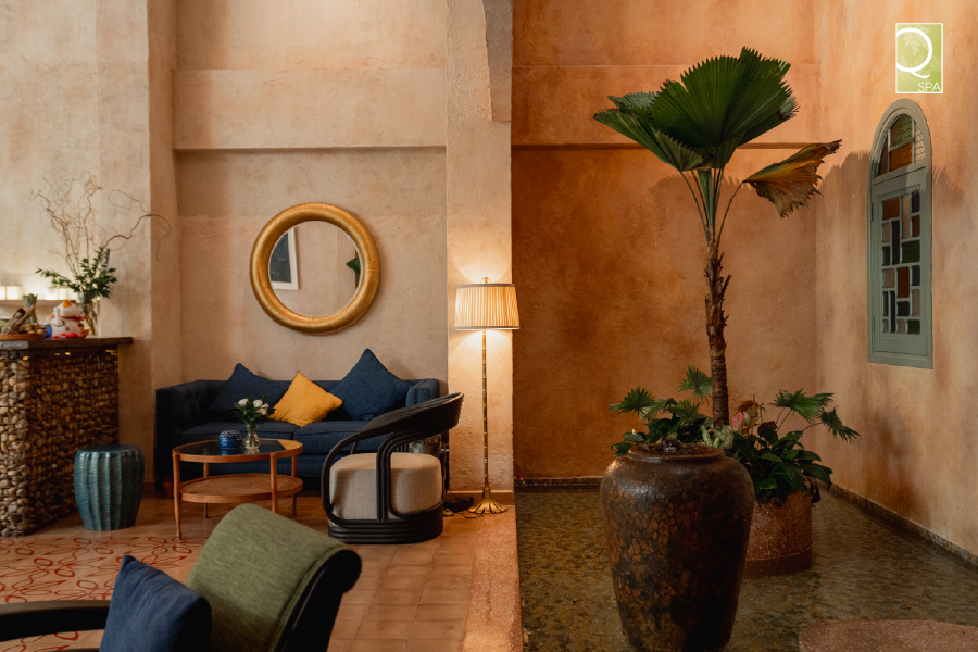 Từng gian phòng tại Qspa là một thế giới riêng, mỗi chi tiết nội thất đều được lựa chọn kỹ lưỡng, từ chất liệu đến kiểu dáng, nhằm tạo ra một không gian hài hòa và cân đối. Nơi sự tĩnh lặng được bảo vệ nhưng vẫn hòa quyện nhịp nhàng với thiên nhiên qua những khoảng xanh mát lành. Ánh sáng dịu nhẹ, chất liệu tự nhiên và hương thơm thuần mộc đan xen, tạo nên không gian vừa riêng tư vừa thông thoáng, giúp bạn dễ dàng buông bỏ và tìm lại trạng thái cân bằng.